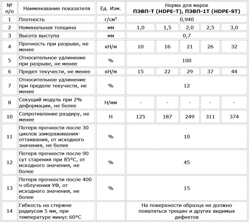 Технические характеристики текстурированной геомембраны BentIzol® GM марок ПЭВП-Т (HDPE-T), ПЭВП-1Т (HDPE-ST)